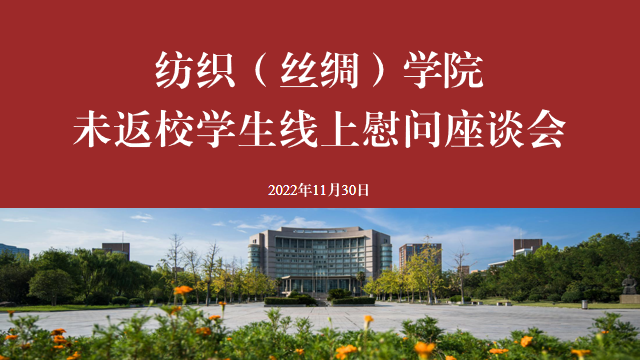 为进一步做好因疫情暂缓返校学生的教育管理工作,及时解决学生居家学习期间遇到的各种问题,同时缓解学生的焦虑和压力,引导其树立积极乐观的心态。20221130日上午1030,太阳集团网站8722(国际丝绸学院)举行未返校学生线上慰问座谈会,党委副书记方平、学生辅导员张虹、袁紫琳和张云宇、班主任、学院未返校学生和班级班干部代表参加慰问座谈会。