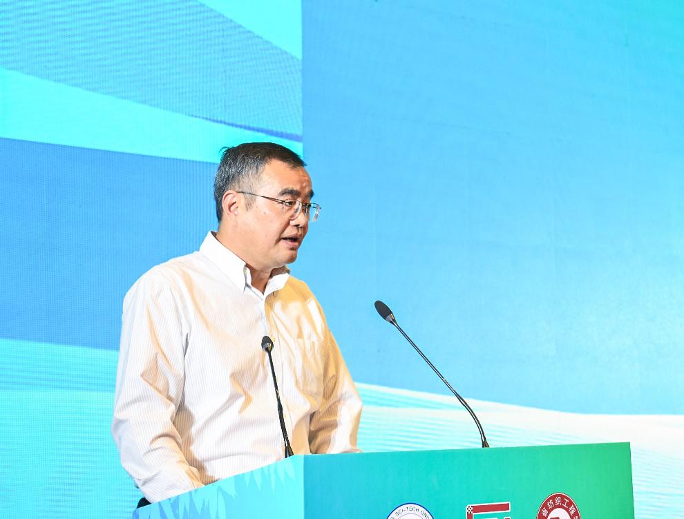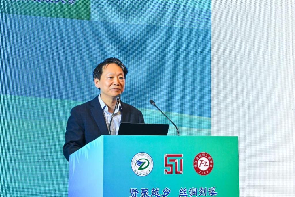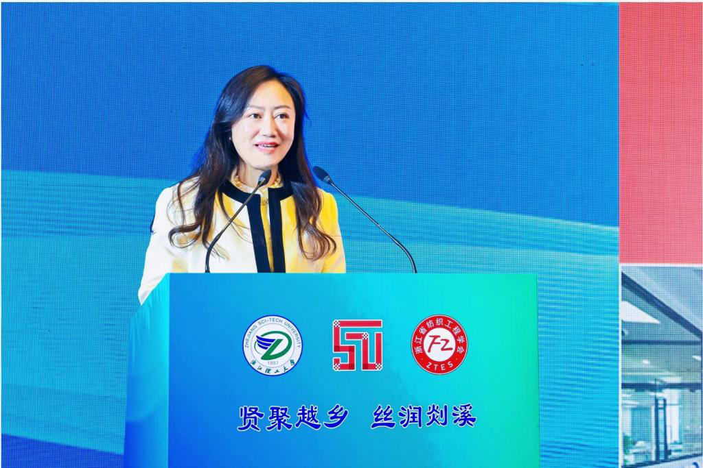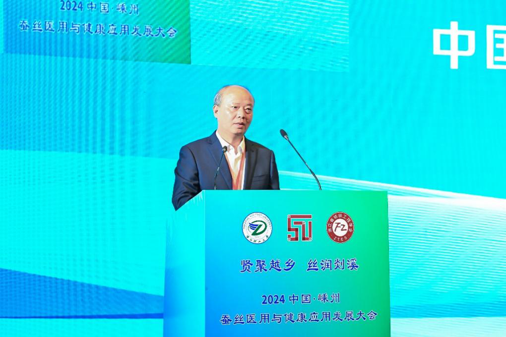 中国工程院院士、浙江理工大学校长陈文兴教授致辞。他介绍了浙江理工大学的基本情况以及近年来在科技创新领域所取得的发展成果。陈校长表示,希望浙江理工大学嵊州创新研究院持续健康发展,建设成为集科技成果应用转化、高层次人才引育、关键核心技术攻关、高新技术企业孵化、创新创业人才培养和战略性新兴产业培育于一体的高端研发平台,成为嵊州打造“中国丝高地”的科技支撑和重要力量。希望有更多优秀的人才和优质成果落地嵊州,以创新为主导,锚定发展新质生产力,助力嵊州蚕丝医用与健康产业高质量发展。