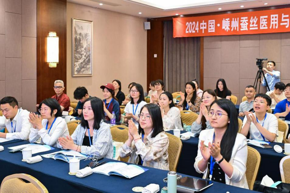 同时,以“蚕丝医用与健康科技创新”和“蚕丝医用与健康产业应用”为主题的特邀报告分两个会场进行,大会有幸邀请到西南大学副教授余堃、西湖大学研究员郭成辰、苏州大学教授王晓沁、东南大学医学院副教授张薇、浙江理工大学教授孔祥东、苏州大学教授卢神州、苏州大学现代丝绸国家工程实验室教授吕强,浙江星月生物科技股份有限公司高级工程师赵洪石、武汉大学教授邓红兵、东华大学教授王璐、苏州大学教授李刚、浙江大学教授杨明英、西南大学副教授龙定沛作主题报告,深入探讨了蚕丝医用与健康应用领域的前沿发展趋势、技术创新、市场机遇。
