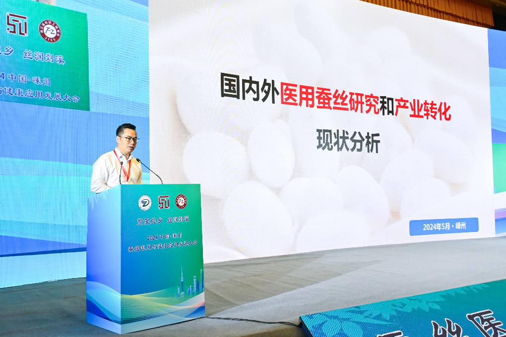 浙江理工大学副校长、浙江大学教授欧阳宏伟作《国内外医用蚕丝研究现状分析》报告,欧阳教授从蚕丝的生物相容性、蚕丝健康应用研究、蚕丝健康产业转化三个方面进行分享,着重分析近30年来蚕丝在生命健康领域的应用研究趋势,预期蚕丝材料将在未来生命健康领域的应用掀起革命性浪潮。