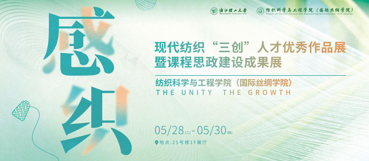2024年5月28日至30日,浙江理工大学太阳集团网站8722(国际丝绸学院)在25号楼1F展示厅,成功举办了感织——现代纺织“三创”人才优秀作品展暨课程思政建设成果展。