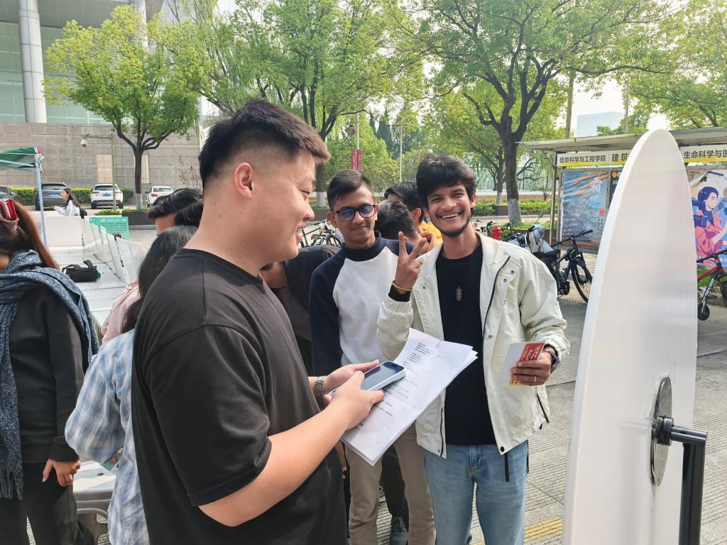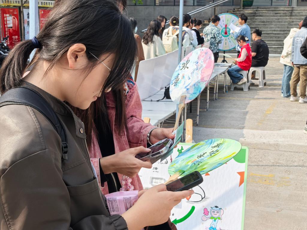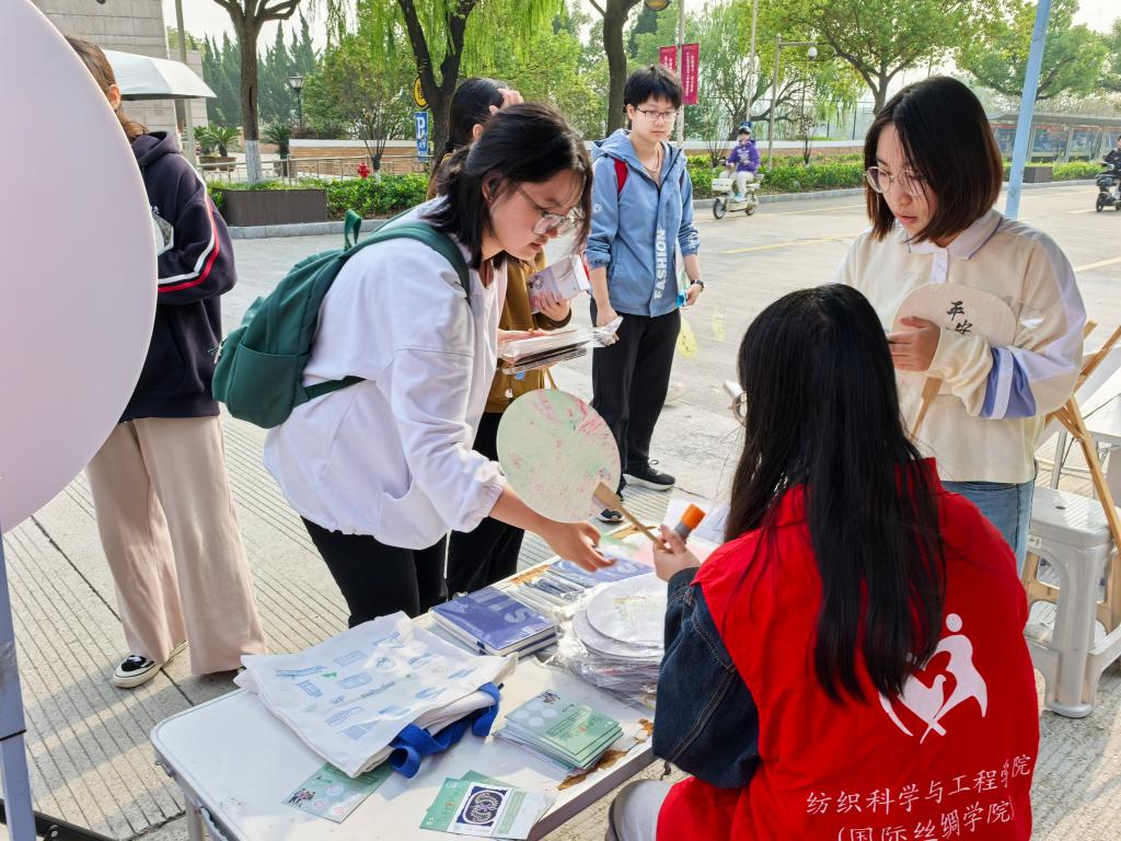 本次非遗文化“嘉年华”现场更是精彩纷呈,共设置了四大“打卡”环节——走进家乡非遗展、漆扇制作工坊体验、丝物连连看知识竞赛以及AI生成“丝”享头像趣味活动。同学们不仅可以近距离观赏各种非遗绣法的独特魅力,还能亲手体验非遗漆扇传统工艺的现代演绎。通过辨认各类布料、了解材质特性以及获取面料纺织小知识等互动环节,同学们对纺织文化有了更加深入的了解。最后,利用最新的人工智能技术,还可以生成专属于自己的“丝”享头像,感受科技与文化的完美融合。