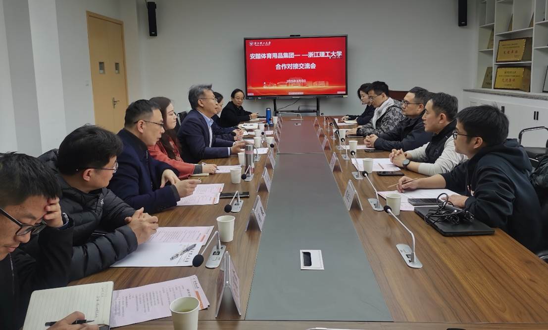 3月6日下午,浙江理工大学----安踏集团合作对接交流会在17号楼312会议室举行。副校长郭玉海出席交流会。安踏集团首席运营官陈科等集团高级管理人员参加交流会。校产业技术中心、太阳集团网站8722(国际丝绸学院)、服装学院负责人参加交流会。
