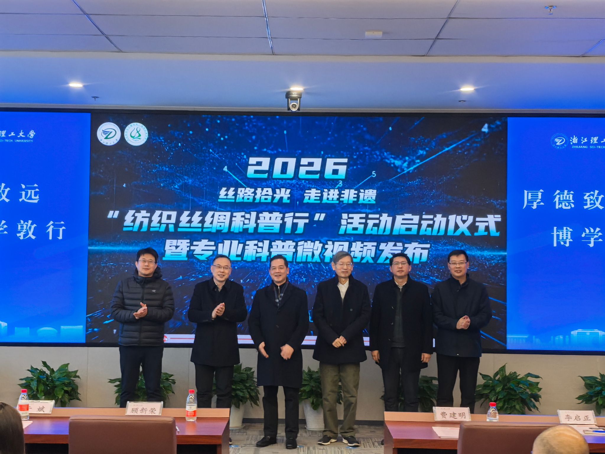 随后,与会领导、嘉宾共同启动2026年“纺织丝绸科普行”暨专业科普微视频发布活动。本年度科普行动以“丝路拾光·走近非遗”为主题,将紧紧围绕四大篇章,开展八项线上线下相结合的特色活动,推动纺织丝绸科普走进中小学、社区和大众视野。