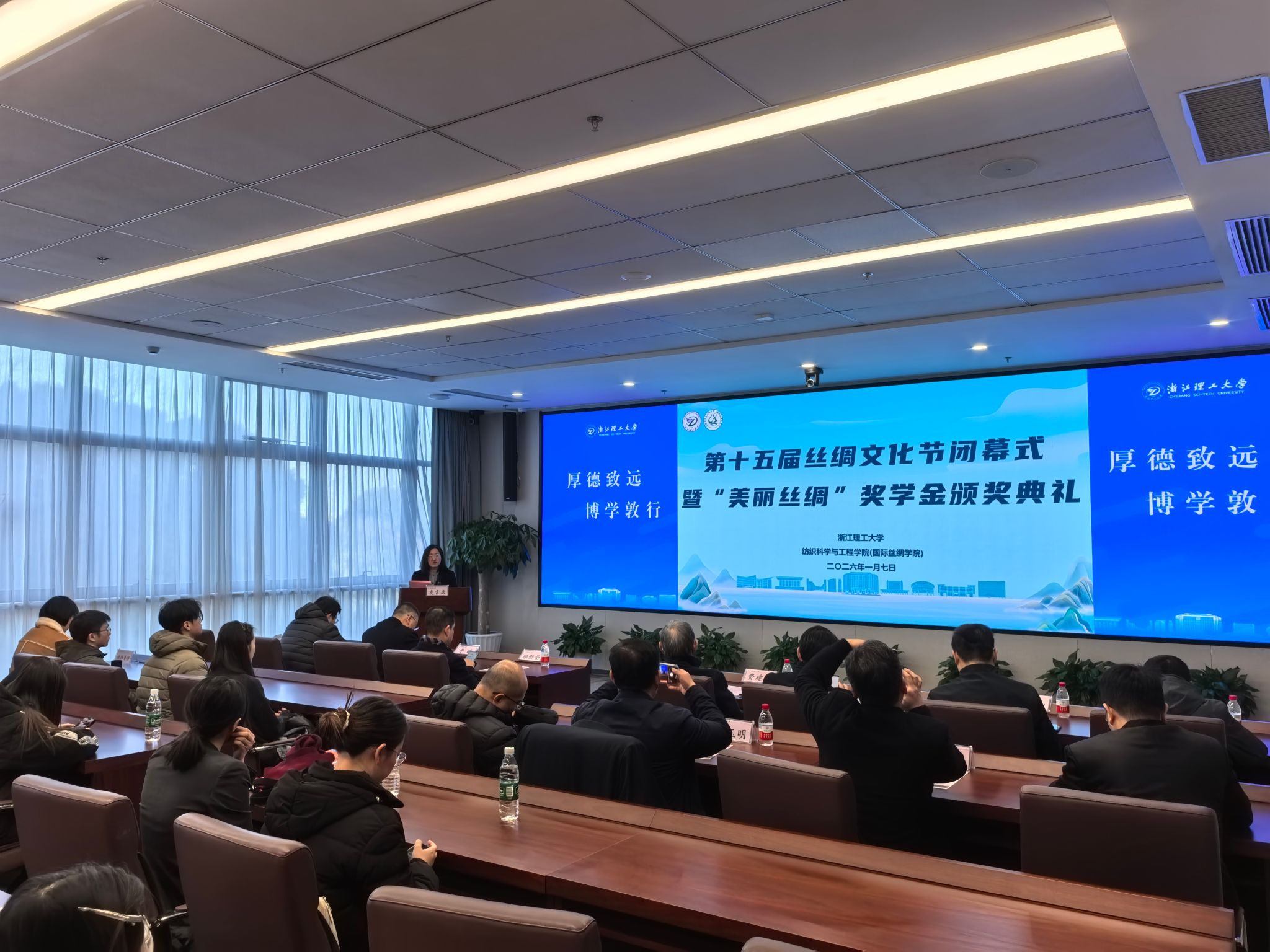 1月7日下午,太阳集团网站8722(国际丝绸学院)第十五届丝绸文化节闭幕式暨“美丽丝绸”奖学金颁奖典礼在尚+大楼310报告厅隆重举行。